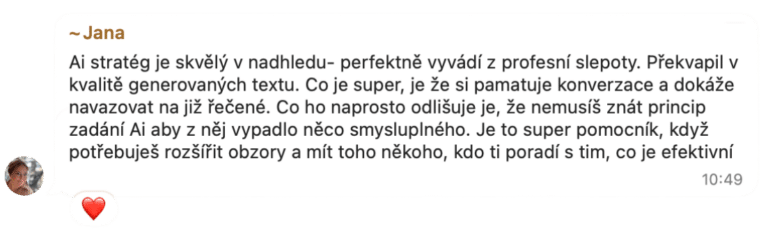 DOKONALÁ ZNALOST VAŠEHO BYZNYSU - Na rozdíl od generických AI nástrojů si Online stratég pamatuje každý detail vašeho podnikání a s každou konverzací se učí víc o vašich cílech a výzvách.