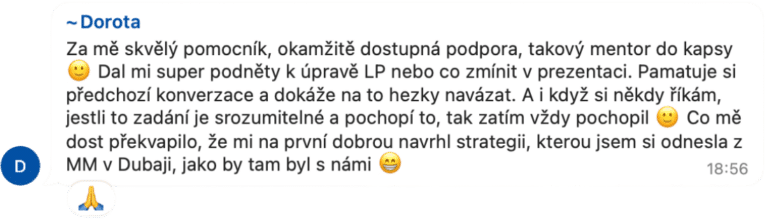 VÁŠ 24/7 STRATEGICKÝ PARTNER - Získáte byznys parťáka, kterému jsem předal své 15 leté zkušeností z online podnikání a který je vám dostupný kdykoliv potřebujete radu, inspiraci nebo zpětnou vazbu.